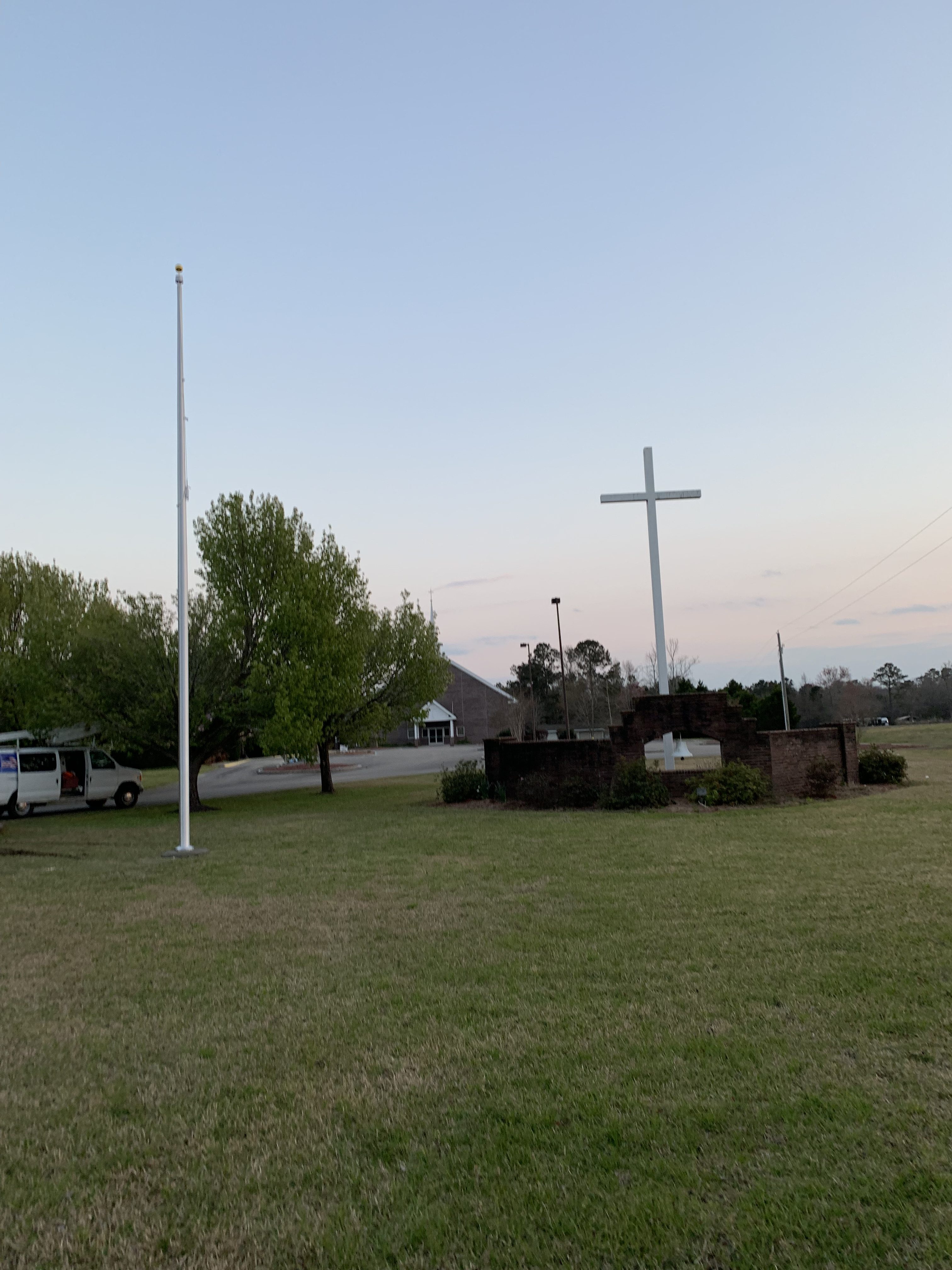 35’ commercial flagpole with internal halyard rope system. This church will fly both the US and Christian flags. #AllStarFlags #FlagpolePros #CarolinaSkies #commercialflagpole